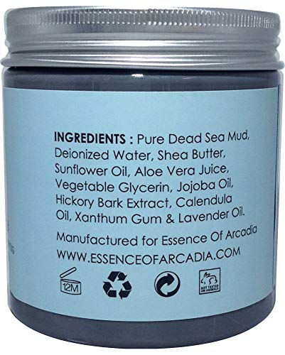 - RICH IN MINERALS - Dead Sea Mud absorbs excess oil, draws out impurities, exfoliates, cleanses, and detoxifies your skin while removing the dead cells, and shrinking pores, fine lines & wrinkles. This incredible organic mask includes all-natural ingredients like Dead Sea Mud, Shea Butter, Sunflower Oil, Aloe Vera Juice, and Jojoba Oil. The result is a soft and creamy mask that's safe for all skin types to use on either the face or body.