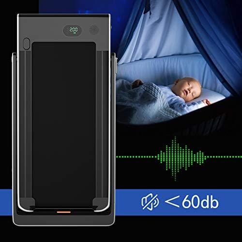 - EASY TO MOVE AND STORE -- The compact, foldable design and built-in transport wheels make it easy to move and store this under desk treadmill to save space. And it's out of the box and doesn't need to be installed.