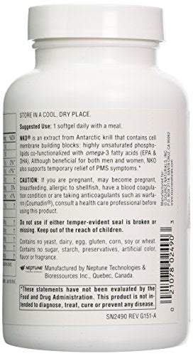 Details: NKO is an extract from Antarctic krill that contains cell membrane building blocks: highly unsaturated phospholipids co-functionalized with omega-3 fatty acids (EPA and DHA). Although beneficial for both men and women, NKO also supports temporary relief of PMS symptoms.